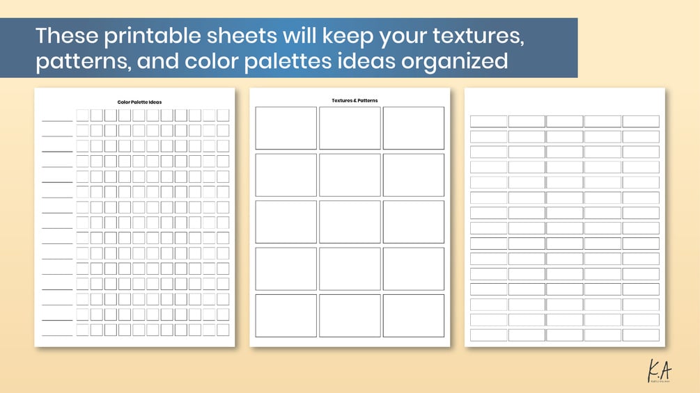 Keep track of your colors, textures, and patterns ideas in one sheet. Do a sample of your coloring pencils, markers, pens, oil pastels, crayons, and even watercolors but I highly recommend having it printed on a thick paper if you're going for watercolors.